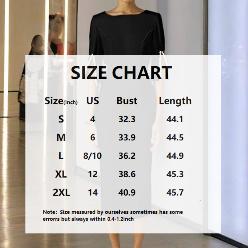 Women's Solid Color Pearl-Embellished Round Neck Dress - Elegant Back Zipper & Slit Sleeve Formal Dress
